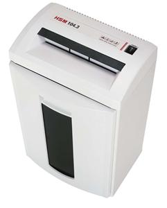 Stroj HSM 104.3 je vhodný do kanceláří pro několika pracovníků. Stejně, jako u ostatních skartovacích strojů HSM, jsou samozřejmostí masivní nože z kvalitní oceli se zakalením, které umožňují skartování kancelářských sponek a plastových karet.Výkonný motor má chlazení, které umožňuje nepřetržitý provoz stroje.