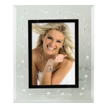 - portrétový rám vyrobený zo skla, s ornamentami a trblietavými čiastočkami- sametová zadná strana čiernej farby