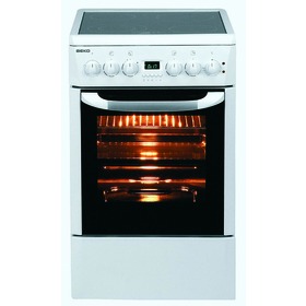 Sklokeramický sporák, energetická trieda A, multifunkčná rúra, osvetlenie rúry, elektronický časovač s displejom, dvojité sklo dvierok, rozmery (vxšxh) 85x50x60 cm---