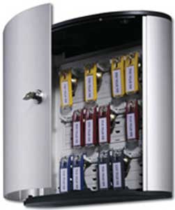 Skrinky na kľúče so zámkom na číselný kód a dvierkami, otvárajúcimi sa z dôvodu lepšej obsluhy v 180° uhle. Kapacita 36 kľúčov. Jednoduchá montáž na stenu. Súčasťou balenia je montážna sada a 6 menoviek na kľúče v rôznych farbách. Farba striebornáwww.durableofficeproducts.com