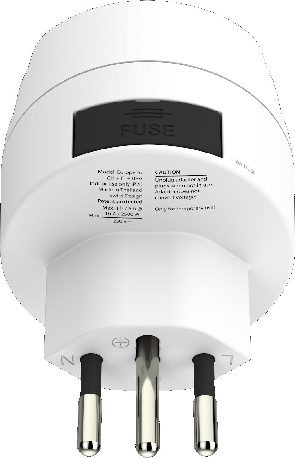 SKROSS cestovný adaptér pre použitie v Brazílii, Taliansku a Švajčiarsku.