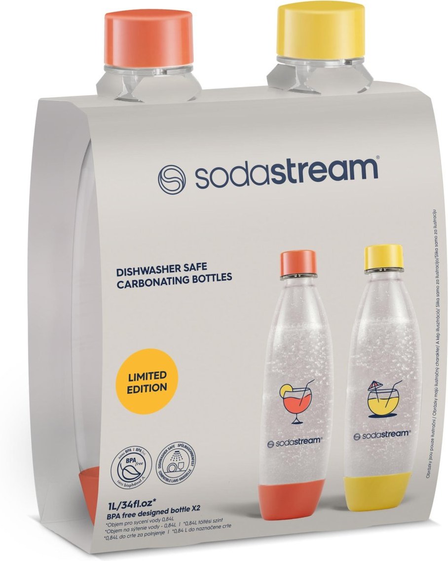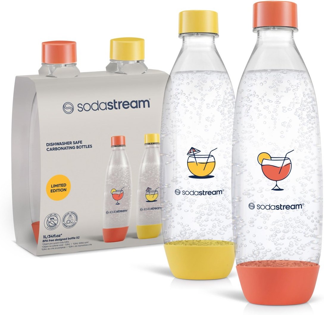 príslušenstvo pre SodaStream, sada obsahuje 2 fľaše v dizajne letných kokteilov, v sýtej červenej a žltej farbe.Zobraziť viac