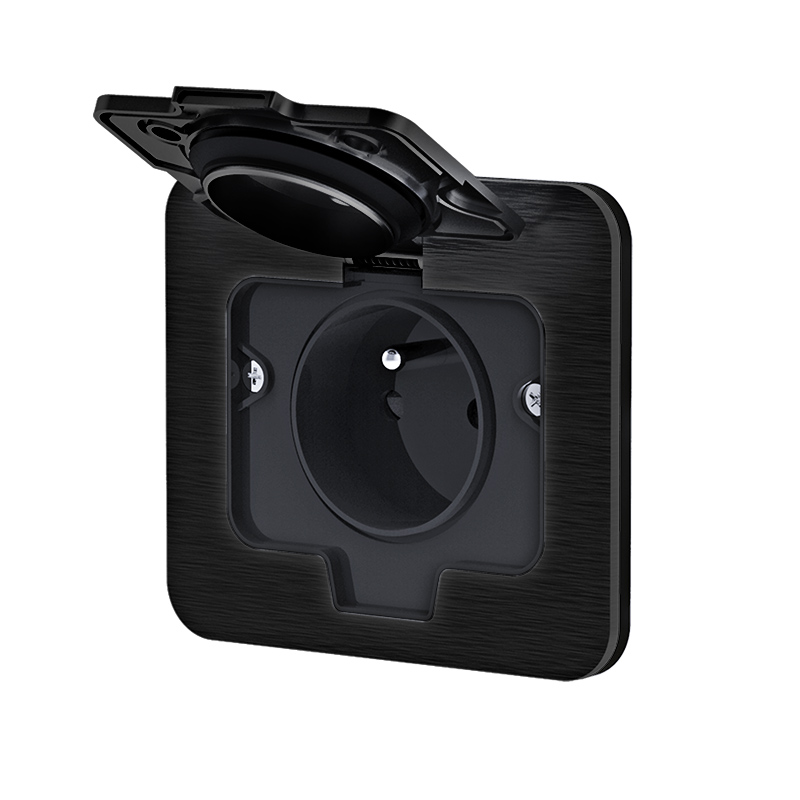 Vrchný kryt zásuvky je vyrobený z odolnej zinkovej zliatiny, ktorá zaisťuje pevnosť a zároveň ochranu proti korózii. Na povrchu nie sú viditeľné žiadne skrutky – montážne otvory zostávajú skryté pod viečkom. Vďaka tomu pôsobí zásuvka elegantne a profesionálne a zároveň sa ľahko čistí.