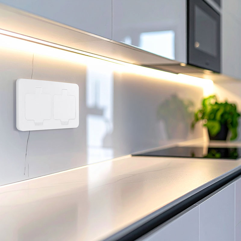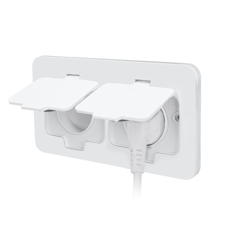 Zásuvka je opatrená dvojitým gumovým tesnením, ktoré bránia prenikaniu vody a prachu pod vrchný kryt aj pod viečka. Uzavreté puzdro chráni vnútornú konštrukciu pred prenikaním vlhkosti z okolia. Krytie IP55 umožňuje použitie aj vo vlhkom alebo prašnom prostredí, napríklad v terasách, záhradných altánkoch, okolo bazénov či dielňach, garážach alebo chodbách. Bez problémov znesie mokré čistenie, či už strojové alebo manuálne. Spoľahlivé fungovanie je zachované aj pri pravidelnom používaní.