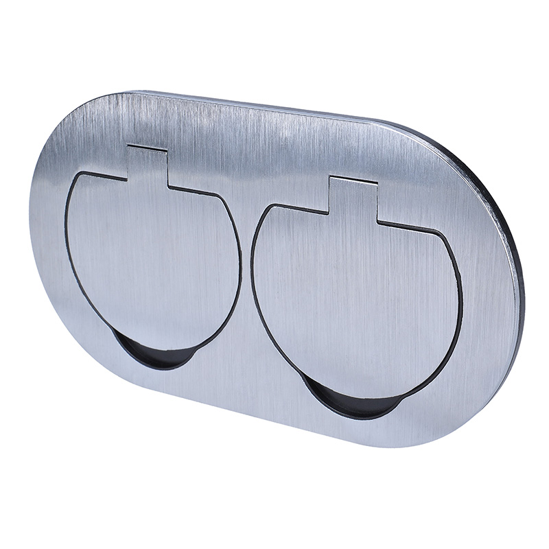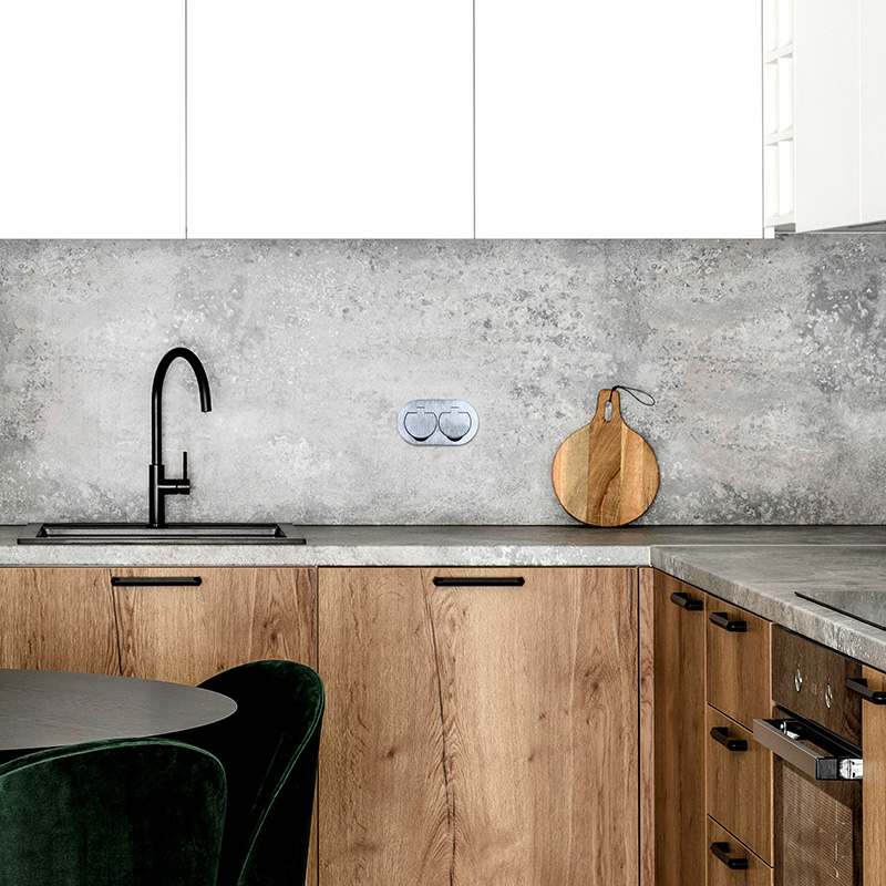 Vrchný kryt zásuvky je vyrobený z odolnej zinkovej zliatiny, ktorá zaisťuje pevnosť a zároveň ochranu proti korózii. Na povrchu nie sú viditeľné žiadne skrutky – montážne otvory zostávajú skryté pod každým viečkom. Vďaka tomu pôsobí zásuvka elegantne a profesionálne a zároveň sa ľahko čistí.