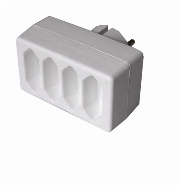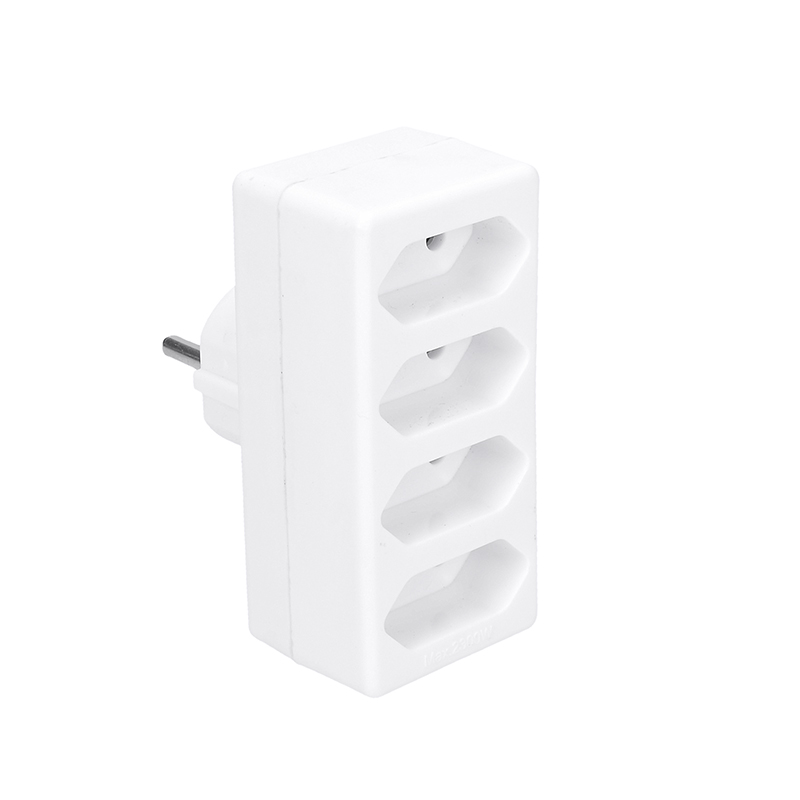 Táto jednoduchá rozbočka slúži na zapojenie štyroch neuzemnených spotrebičov s prívodnými šnúrami s plochou vidlicou. Lampička, set-top-box, router, bluetooth repro, apod.