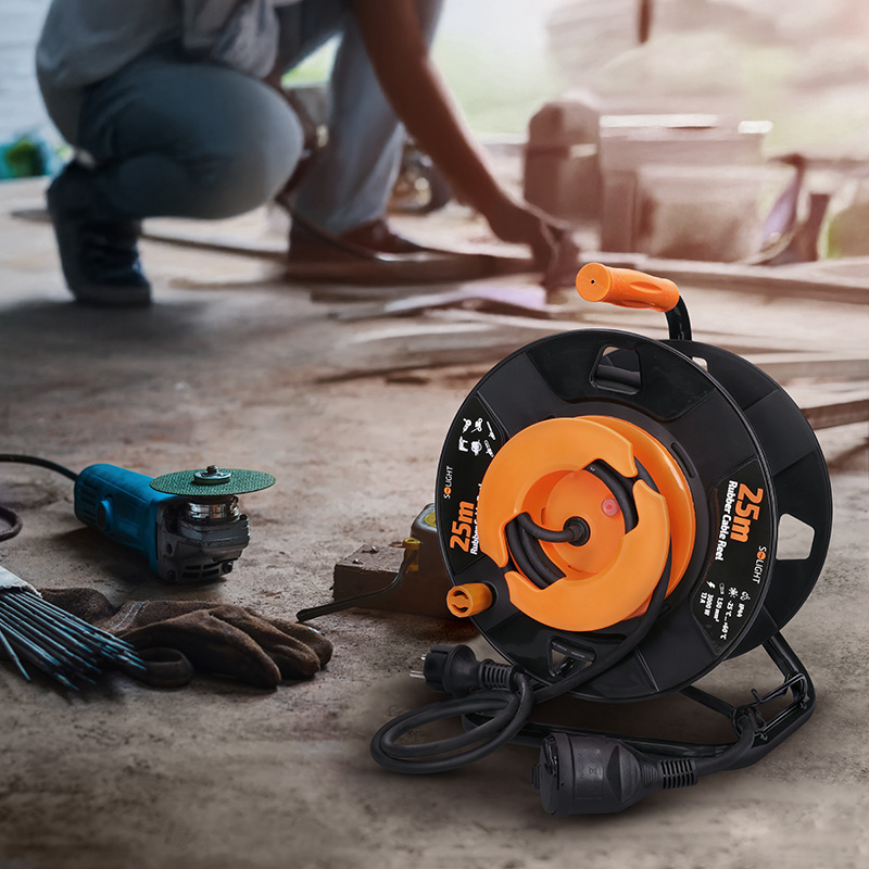 Solight PB30, predlžovací prívod - na bubne, vonkajší, 1 zásuvka, čierny, gumový kábel, 25m