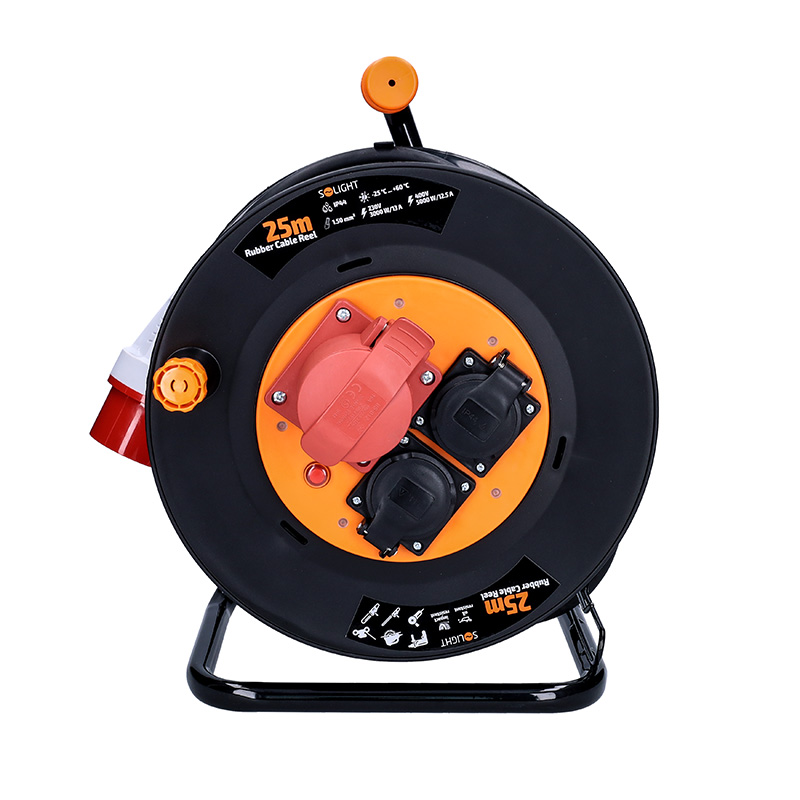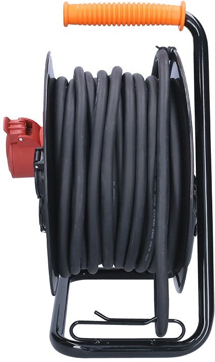 Robustný predlžovací prívod na bubne s dĺžkou 25 metrov, jednou zásuvkou na 400 V a dvoma zásuvkami na 230 V je ideálnou voľbou pre napájanie stavebných strojov, profesionálneho náradia alebo dielenského vybavenia. Vďaka káblu z mäkčenej gumy a krytiu IP44 je vhodný aj do náročných podmienok na stavbách alebo v priemysle. Samovoľnému navíjaniu bráni integrovaná aretačná brzda.