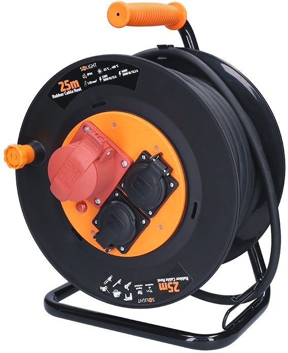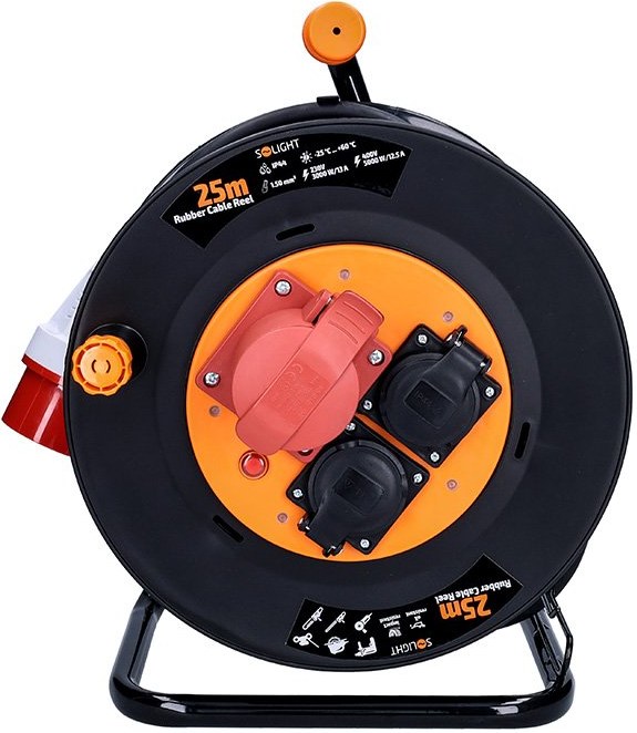 Solight PB40, predlžovací prívod - na bubne, zásuvky 400V + 230V, 25m kábel guma-neopren 5x1,5mm2, IP44