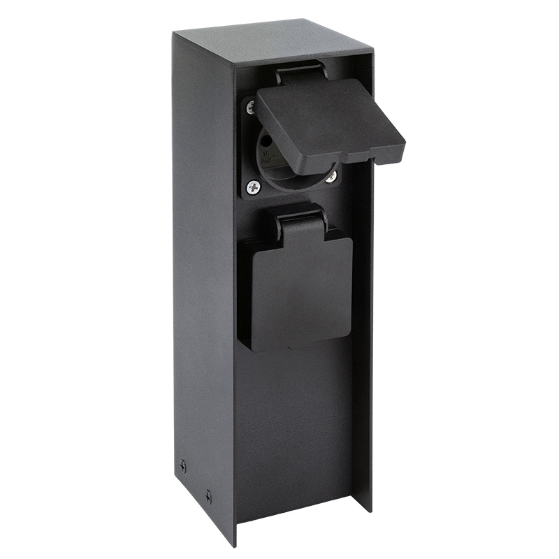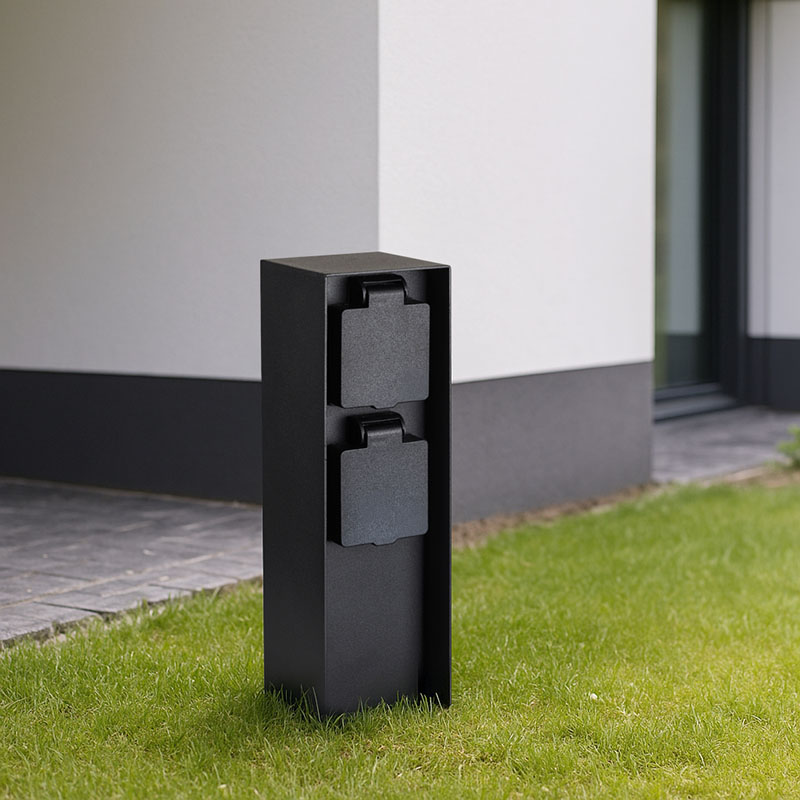 Štýlový elektrický rozvodný stĺpik z tlakovo liateho hliníka je ideálny pre napájanie zariadenia na záhradách, dvoroch alebo príjazdových cestách. Štíhly hranol s precíznym tvarom a matným čiernym povrchom pôsobí moderne a prirodzene zapadne do každého vonkajšieho priestoru.