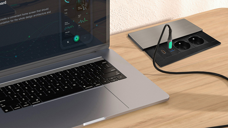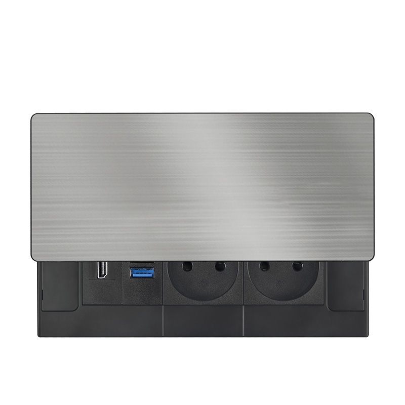 Tento vstavaný blok zásuviek ponúka viac ako len napájanie - kombinuje dve sieťové zásuvky 230 V, USB rýchlonabíjačku a HDMI port v jednom kompaktnom module. Vrchný kryt z matnej tmavej nerez ocele (inox) s posuvným mechanizmom sa ľahko začlení do moderného interiéru pracovných stolov, prezentačných priestorov aj obývacích izieb. Vďaka káblu s dĺžkou 2 metre je inštalácia flexibilná a pohodlná.