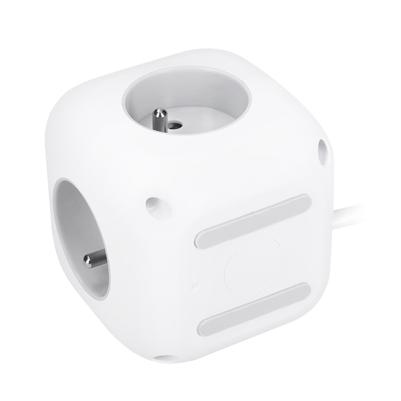 Premyslené rozmiestnenie zásuviek umožňuje ľahké pripojenie rôznych prívodných šnúr aj objemných napájacích adaptérov bez vzájomného prekážania. Elegantný kockový dizajn so zaoblenými hranami, bielym telom a šedými zásuvkami sa hodí do každého prostredia – či už ide o kanceláriu, domácnosť alebo pracovnú dielňu.