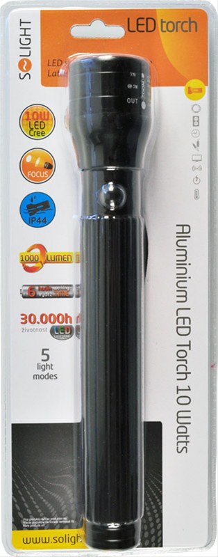 Solight svietidlo, 1x 10W LED Cree, čierne, 3x C, so šnúrkou