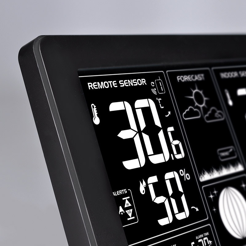 extra veľký čiernobiely displej, teplota, vlhkosť, tlak, RCC, USB nabíjanie