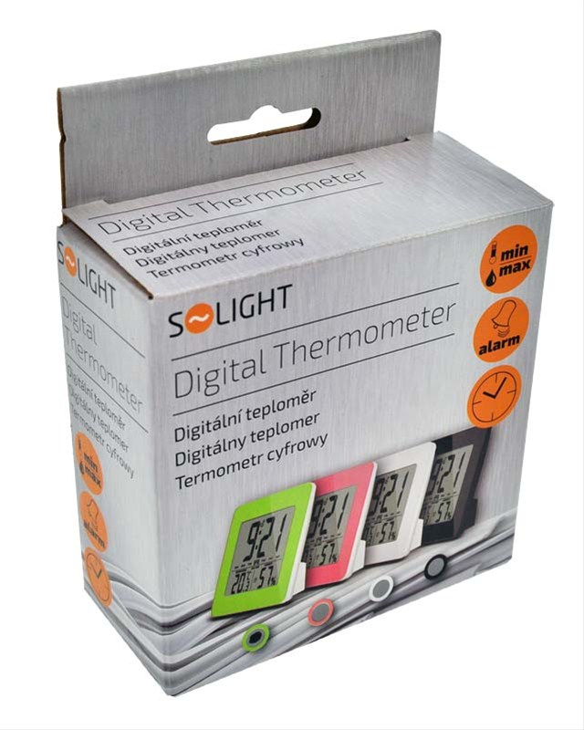 Solight teplomer, teplota, vlhkosť, budík, LCD displej, pastelový zelený rámikZobraziť viac