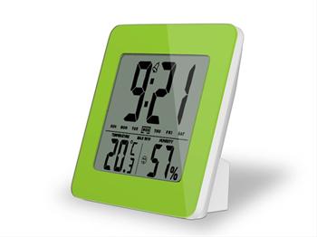 Solight teplomer, teplota, vlhkosť, budík, LCD displej, pastelový zelený rámik