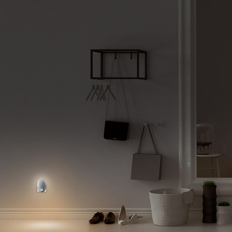 Praktické nočné svetlo LED s integrovaným senzorom pohybu a svetla je ideálnou voľbou na bezpečné osvetlenie chodieb, schodísk, spální alebo detských izieb. Pri poklese intenzity svetla a detekcii pohybu sa svetlo automaticky zapne. Ponúka spotrebu energie 0,7 W a príjemné teplé biele svetlo (3000 K) s výkonom 20 lm.