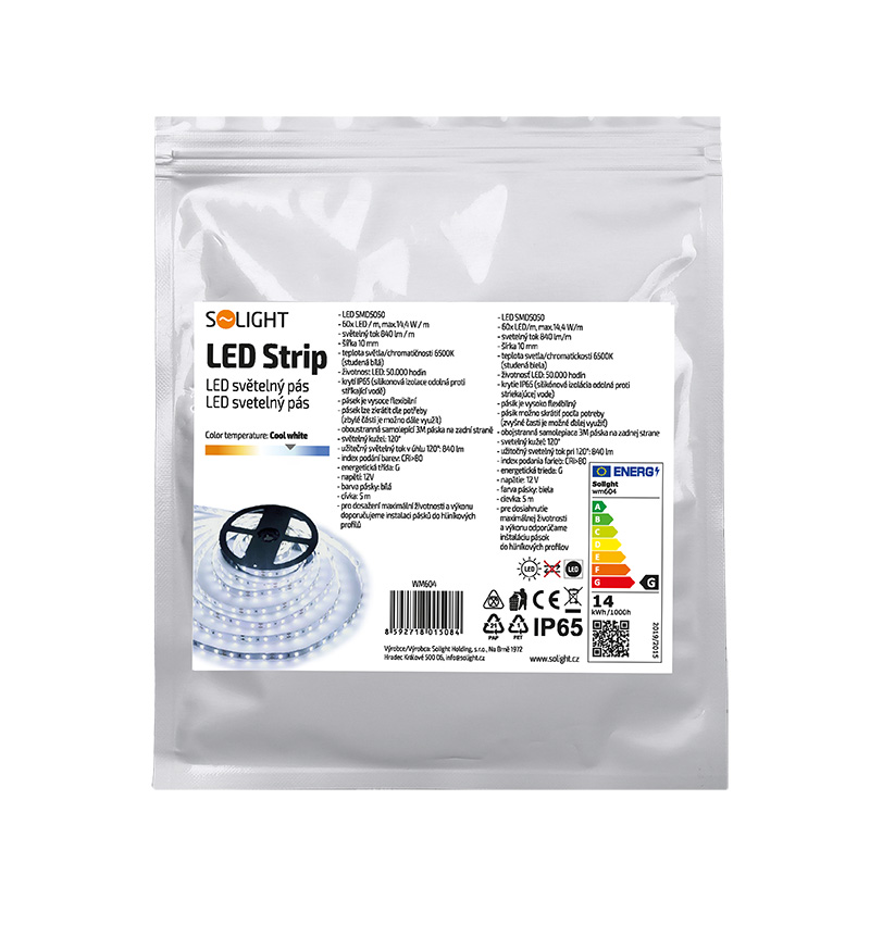 Solight WM604, LED svetelný pás, 5m, SMD5050 60LED/m, 14,4W/m, IP65, studená biela