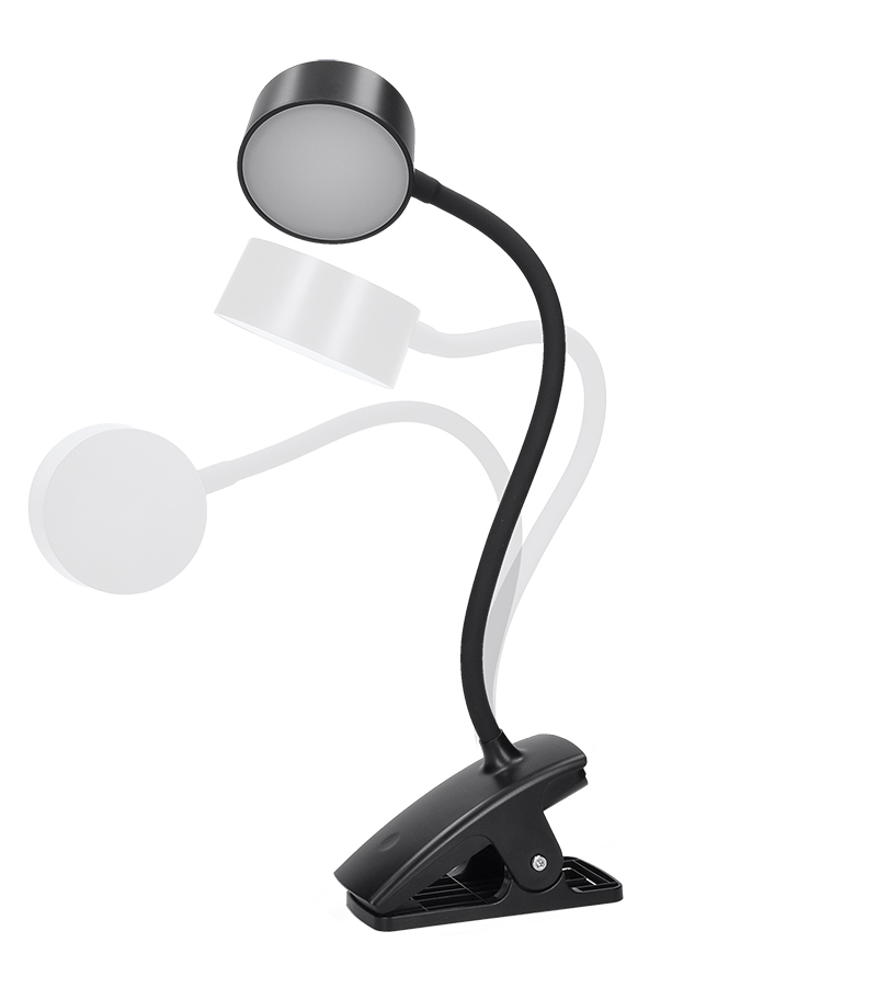 stolná lampa, LED, 2W, 210lm, 3000/4000/6500K, clip, integrovaná batéria, čiernaZobraziť viac