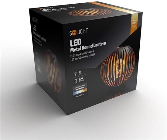 Solight WO3102, kovový okrúhly lampáš so žiarovkou s micro LED, teplá biela, medená, 3xAA, 19cm