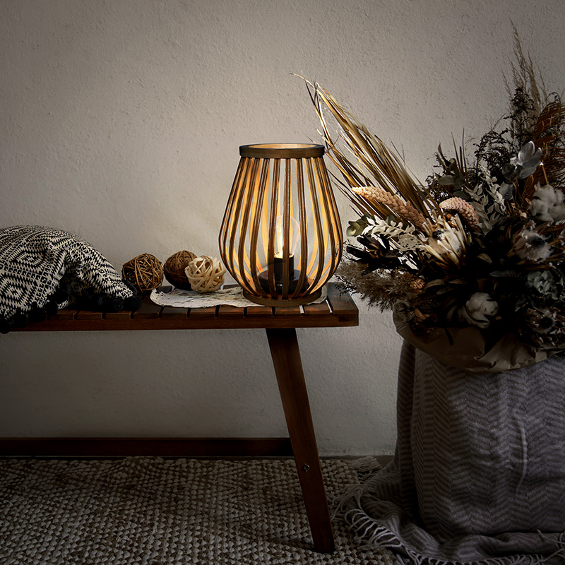bambusový lampáš s LED žiarovkou, teplá biela, 2x AA, 20cmZobraziť viac