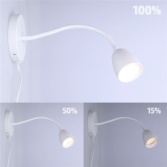 LED nástenná lampička, stmievateľná, 4W, 280lm, 3000K, bielaZobraziť viac