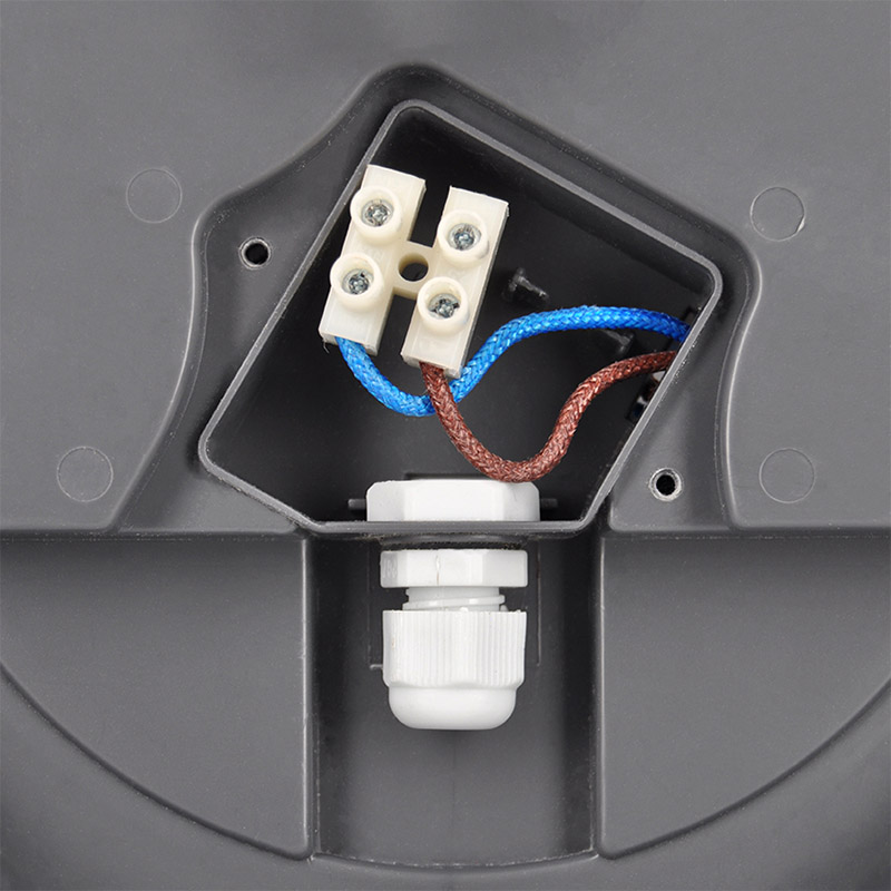 Materiály PP a PS zaručujú odolnosť a stupeň krytia IP54 chráni svietidlo pred striekajúcou vodou a prachom. Inštalácia je možná na steny a stropy a svietidlo funguje pri teplotách od -20 °C do +50 °C. Jeho rozmery 230 × 230 × 73 mm a decentný sivý vzhľad z neho robia univerzálny a funkčný doplnok do interiéru aj exteriéru. Technológia LED so životnosťou až 30 000 hodín prispieva k úspornej a bezproblémovej prevádzke.