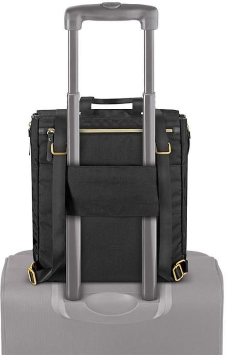 Austin Hybrid Ladies Tote 3v1 možno ľahko používať ako tašku do ruky alebo ako batoh, vďaka dvom ramenným popruhom v zadnej časti tašky. Elegantný dizajn bol vyvinutý dizajnérmi v našom tvorivom štúdiu v New Yorku. Nadčasové vyhotovenie so zlatými doplnkami. Táto farebná kombinácia stelesňuje dušu New Yorku a vytvára neohrozený vzhľad, ktorý dokáže všetko. Taška bola navrhnutá nielen pre prenášanie vášho notebooku či tabletu, ale vďaka mnohým vreckám, pojme i rad ďalších vecí.Vlastnosti: