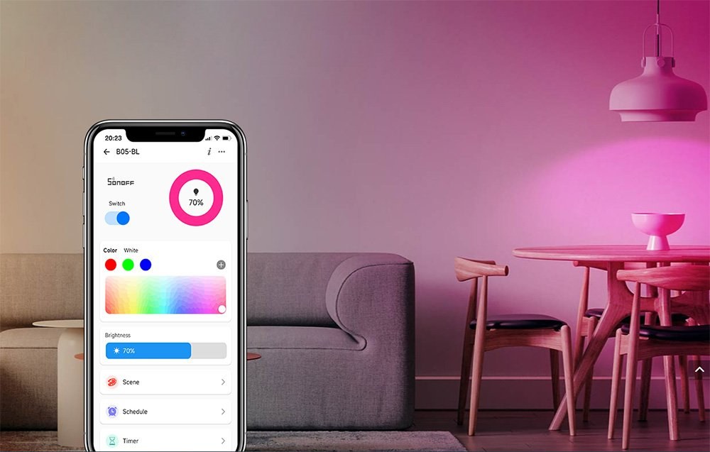 Žiarovku budete ovládať pomocou špeciálnej aplikácie eWeLink. Využiť môžete aj hlasového asistenta Amazon Alexa alebo Google Assistant. Ďalšou možnosťou je vytvoriť plán, takže sa osvetlenie vo vašej domácnosti bude riadiť samo. Okrem toho môžete nastaviť prevádzku žiarovky tak, aby sa rozsvietila, keď otvoríte dvere.