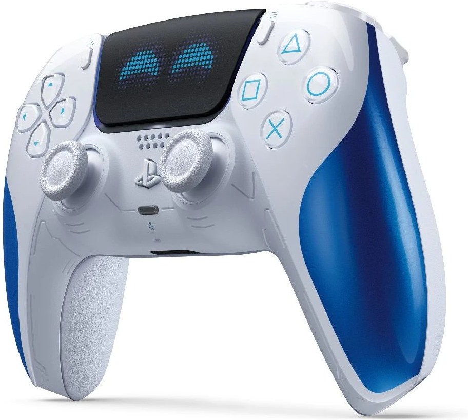 DualSense Wireless Controller v edícii Astro Bot Joyful Limited Edition prináša hravý a futuristický vzhľad, ktorý oslavuje obľúbeného robota Astro. Dizajn je založený na motíve „Dual Speeder“ a vyznačuje sa výraznými modrými akcentmi na rukovätiach a tlačidlách. Dotykový panel zdobia ikonické „veselé oči“, ktoré dodávajú ovládaču jedinečný charakter. Tento limitovaný model je ideálny pre fanúšikov Astro Bot a všetkých, ktorí chcú do svojej hernej zostavy vniesť štýl a originalitu.