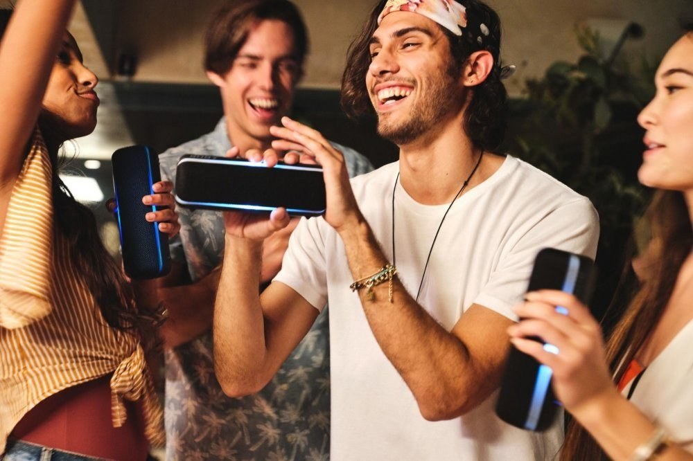 Bez svetiel nieje poriadna party aj preto má reproduktor SRS-XB22 blikajúce svetelné čiary, ktoré sa synchronizujú s rytmom hudby. S funkciou Party Booster. ktorú aktivujete ťuknutím na zapnutý reproduktor na rôznych miestach vytvoríte odlišné zvuky, napríklad zvuk kravského zvonca, škrabanie platne, alebo dokonca veľkého či malého bubna. Hlasitosť efektov ovládate svojou silou – jemným ťuknutím vydá reproduktor tichý zvuk čím silnejšie udrite, tým je hlasitosť napríklad bubna výraznejšia.