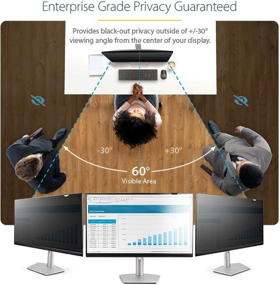 Použite filter súkromia na monitore vášho stolného počítača, aby ste chránili citlivé a dôverné údaje pred ich zobrazením alebo zachytením nechcenými divákmi. Naše súkromné zásteny sú vybavené technológiou Microlouver, ktorá zakrýva pohľad mimo 60-stupňového pozorovacieho uhla. Ideálne riešenie na ochranu súkromia vašich údajov a zabránenie vizuálneho odpočúvania v kanceláriách, zdravotníckych zariadeniach, vládnych inštitúciách alebo iných verejných priestoroch.Zníženie namáhania očí