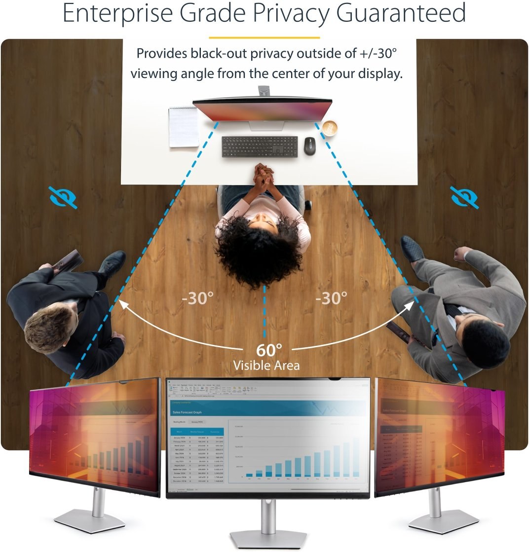 Použite filter súkromia na monitore vášho stolného počítača, aby ste chránili citlivé a dôverné údaje pred ich zobrazením alebo zachytením nechcenými divákmi. Naše súkromné zásteny sú vybavené technológiou Microlouver, ktorá zakrýva pohľad mimo 60-stupňového pozorovacieho uhla. Ideálne riešenie na ochranu súkromia vašich údajov a zabránenie vizuálneho odpočúvania v kanceláriách, zdravotníckych zariadeniach, vládnych inštitúciách alebo iných verejných priestoroch.Zníženie namáhania očí