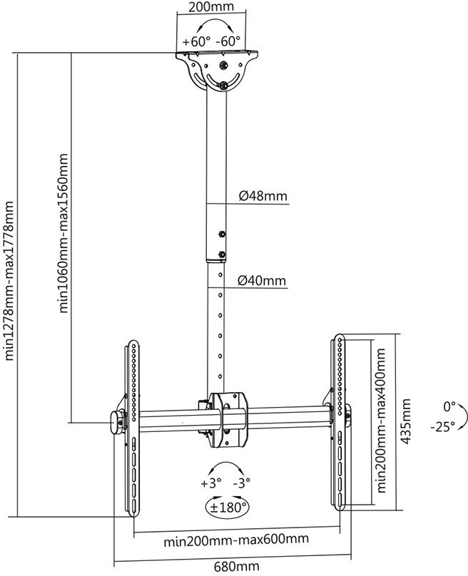 Stropný polohovateľný držiak na TV singleMin. uhlopriečka obrazovky: 40"