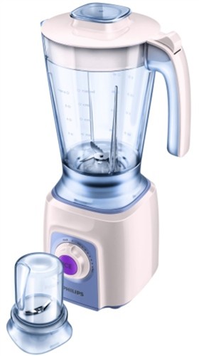 Mixér; příkon 600 W; variabilní nastavení rychlosti; praktický mlýnek; přednastavené tlačítko pro drcení ledu; odnímatelný nůž, nádobí; vroubkované nože pro dokonalé promísení složek; objem: 2 l; barva: bílá levandulováhttp://www.philips.sk/#/headernav/consumer