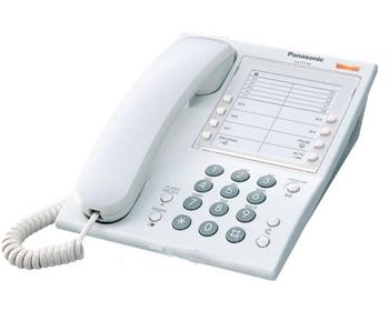 Analógový telefón bez displeja s indikáciou čakajúcej správy, 8 programovateľných CO tlačidiel, Data Port, centrálne programovanie z ústredne v prevádzkovom režime PBX, určený predovšetkým pre segment hotelov, penziónov, sanatórií, nemocníc, bielyK ANALÓGOVÝM POBOČKOVÝM ÚSTREDNIAM KX-TEM824/TES824/TEA308CE A KX-TA616/308CE
