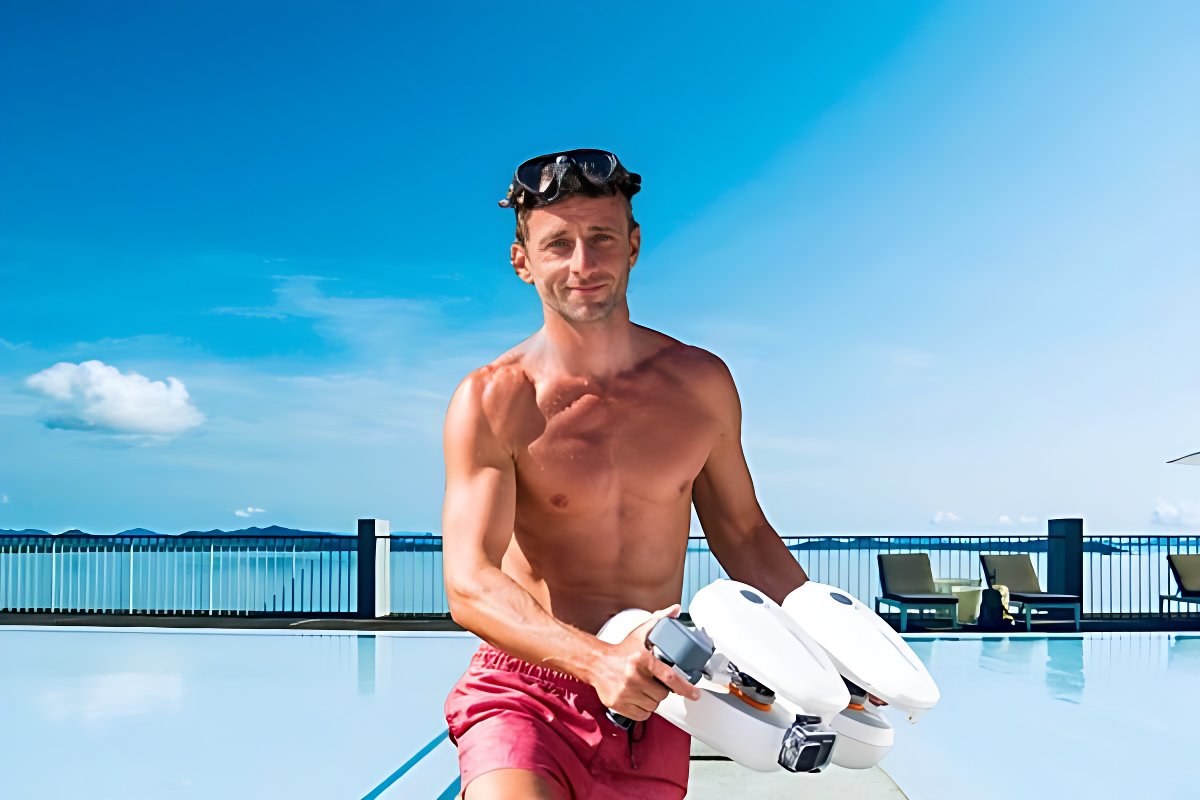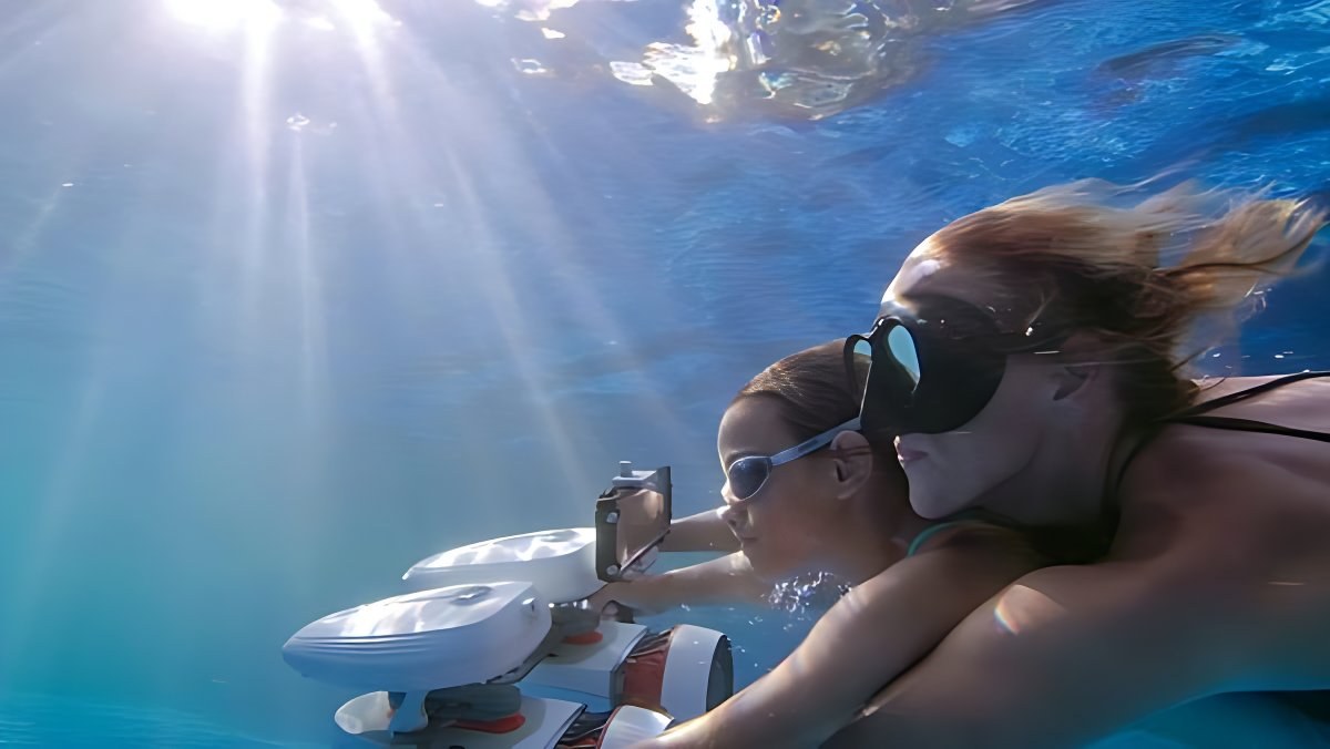 Bezpečné a pohodlné plávanie so skútrom Tini vďaka odľahčenému plaváku.