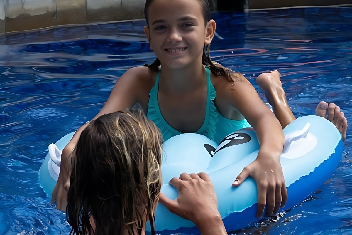 Bezpečné a pohodlné plávanie pre deti so skútrom Tini vďaka nafukovacej doske.