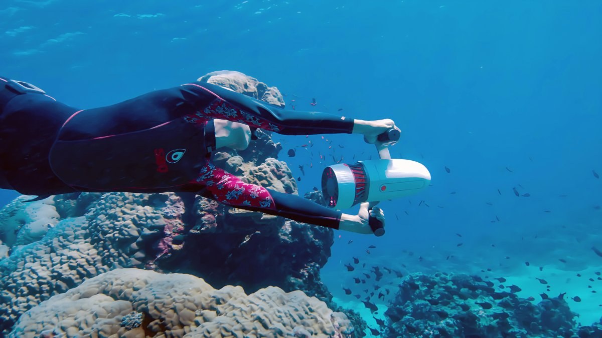 podvodný skúter, kapacita batérie 98 Wh, maximálna rýchlosť 1,4 m/s, vodotesnosť do 40 mZobraziť viac