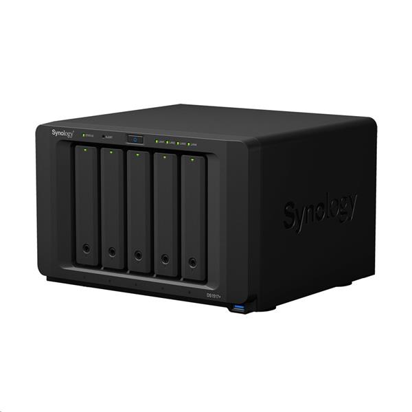 Synology DiskStation DS1517+ je petiprihrádkový server NAS osazený ctyrjádrovým procesorem CPU se systémem hardwarového šifrování AES-NI. Díky ctyrem portum 1GbE jej lze nainstalovat se sítovou kartou 10GbE (NIC) nebo s duální kartou adaptéru M.2 SSD, umožnující zvýšení rychlosti síte nebo navýšení výkonu pomocí mezipameti SSD.