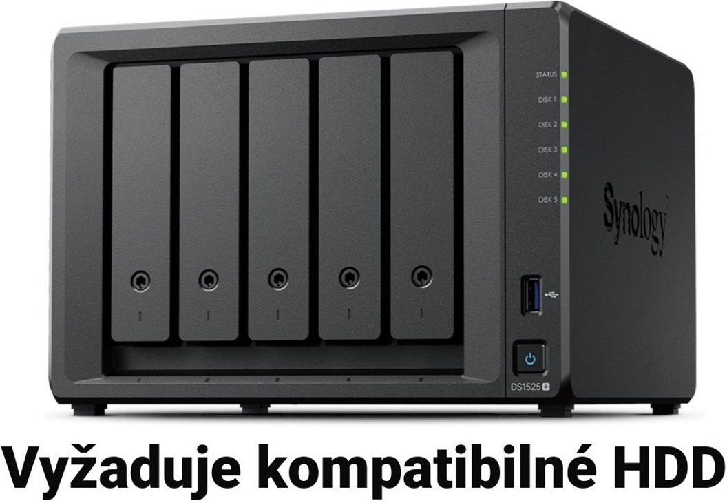 Synology DS1525+ je päť šachtové NAS úložisko navrhnuté pre malé a stredne veľké firmy, ktoré potrebujú spoľahlivé, výkonné a škálovateľné úložisko. Vďaka možnosti rozšírenia až na 15 diskov pomocou dvoch rozširujúcich jednotiek DX517 dokáže zariadenie poskytnúť až 300 TB hrubej kapacity. DS1525+ podporuje disky HDD aj SSD (2,5"/3,5") a disponuje aj dvoma slotmi M.2 NVMe pre SSD cache, čím výrazne zvyšuje výkon pri práci s často používanými dátami.