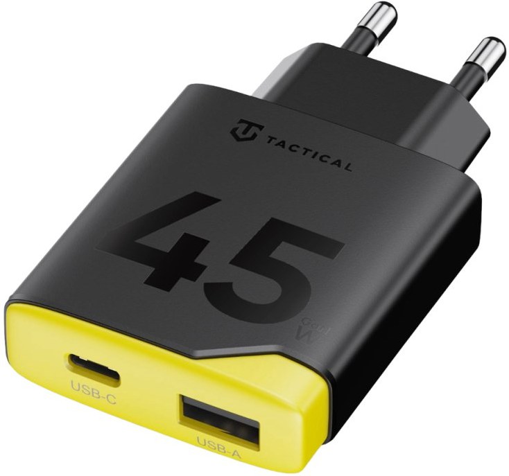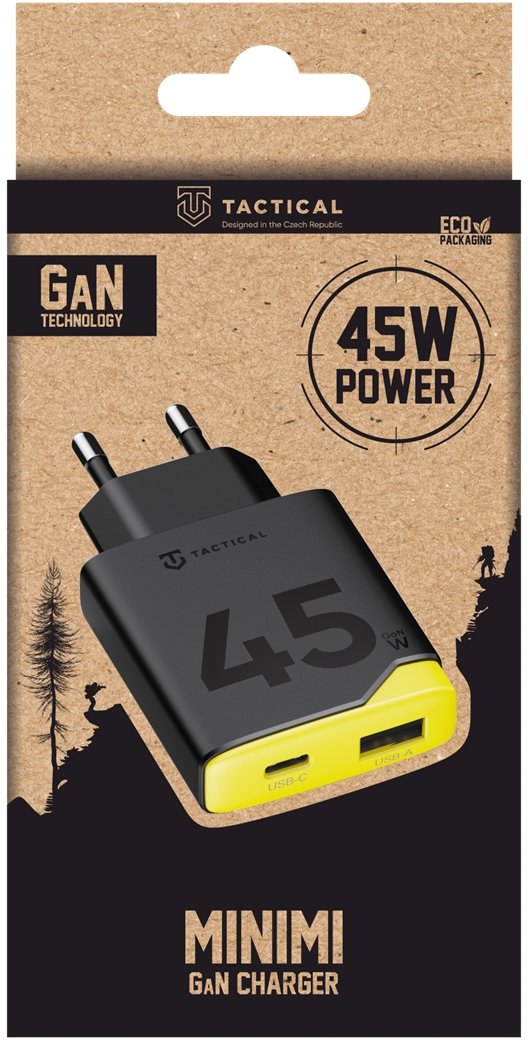 Vreckový adaptér, Tactical Minimi 45W je vybavený GaN technológiou, ktorá umožňuje dostať brutálny výkon do krabičky, ktorá sa zmestí do každého vrecka.Vybavená rýchlonabíjaním, štvorstupňovou ochranou a dvoma nabíjacími portami.