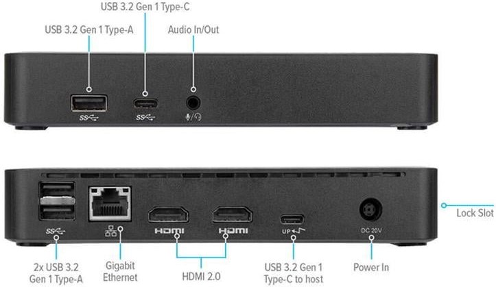 Vychutnajte si ostré a čisté 4K video s podporou pripojenia až dvoch monitorov. Vďaka dvom portom HDMI 2.0 môžete podporovať dva monitory (3840 x 2160 p60). Navyše pripojte všetko svoje obľúbené príslušenstvo pomocou kombinácie USB-A (3x USB 3.2 Gen 1 Type-A port) a USB-C (1x 3.2 Gen 1 Type-C), plus Ethernet a audio porty.