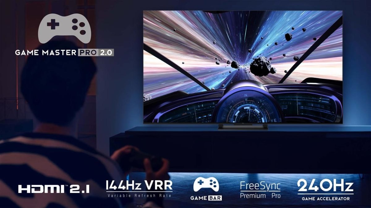 S balíčkom herných funkcií Game Master Pro 2.0 získate výhodu oproti súťaživým hráčom. Pri hraní hier je dôležitá nielen dokonalá grafika, ale aj rýchle reakcie a nízka odozva. S HDMI 2.1 a podporou 144Hz VRR, 120Hz VRR, FreeSync Premium Pro, 240Hz Game Accelerator a ALLM je párty skutočným zážitkom. Vďaka VRR hra beží hladko a bez trhania obrazu a rýchla obnovovacia frekvencia 144 Hz alebo až 240 Hz DLG zaisťuje ostrý, plynulý pohyb a najkratšiu možnú dobu odozvy. ALLM automaticky nastaví najlepší možný herný zážitok, keď je k televízoru pripojená najmodernejšia herná konzola alebo výkonný počítač s podporou HDMI 2.1.