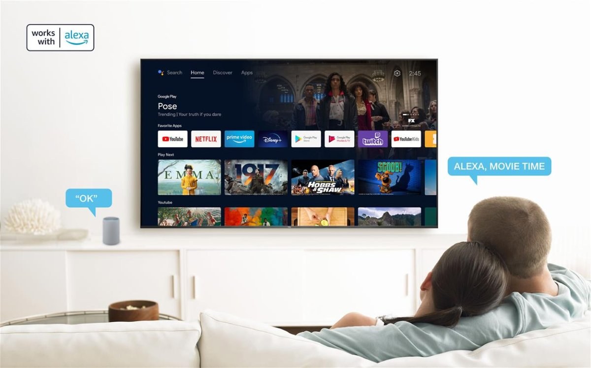 *Kompatibilita s Alexou vám umožňuje používať zariadenia Amazon Alexa, vrátane Amazon Echo, Echo Dot, Echo Show, Echo Spot a Echo Plus (kupujú sa samostatne) na ovládanie televízora.