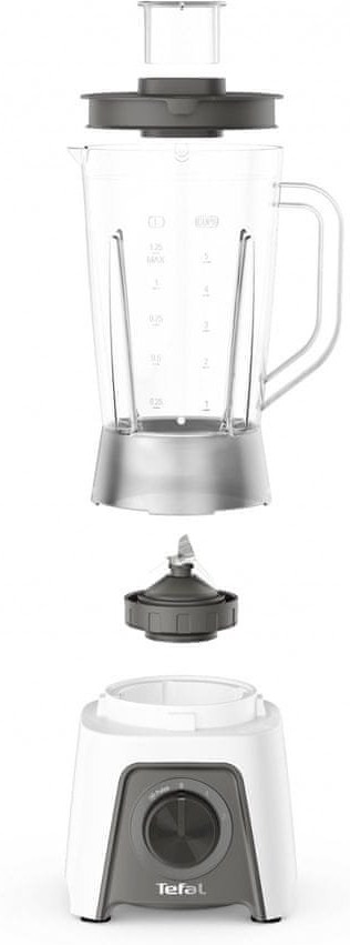 Blendeo je praktický stolný mixér so 4 odolnými nožmi Zelkrom z antikorovej ocele a zaisťuje dlhodobý výkon.So stolným mixérom Tefal Blendeo+ si užijete rýchle a jednoduché mixovanie. Tento praktický stolný mixér je vybavený technológiou na drvenie ľadu, ktorá premení ľad na dreň za menej ako minútu, a vykúzli lahodné mrazené drinky behom okamihu. Vyznačuje sa piatimi piliermi sily a poskytuje vynikajúci výkon pri každodennom mixovaní. Disponuje tiež systémom Smart Lock, ktorý 100 % zabraňuje vytečeniu, čím umožní jednoduché odstránenie nožov a rýchle jednoduché čistenie. Pomocou ergonomického tlačidla s dvoma rýchlosťami a pulznej funkcie môžete tiež ľahko prispôsobiť intenzitu mixovania. To všetko je ukryté vo výkonnom a praktickom dizajne s veľkorysým objemom nádoby na mixovanie a integrovanou odmerkou pre bezpečné a presné dávkovanie. A pretože značka Tefal je súčasťou spoločnosti Groupe SEB, ktorá sa špecializuje na mixéry, môžete si byť istí, že ste urobili správnu voľbu.