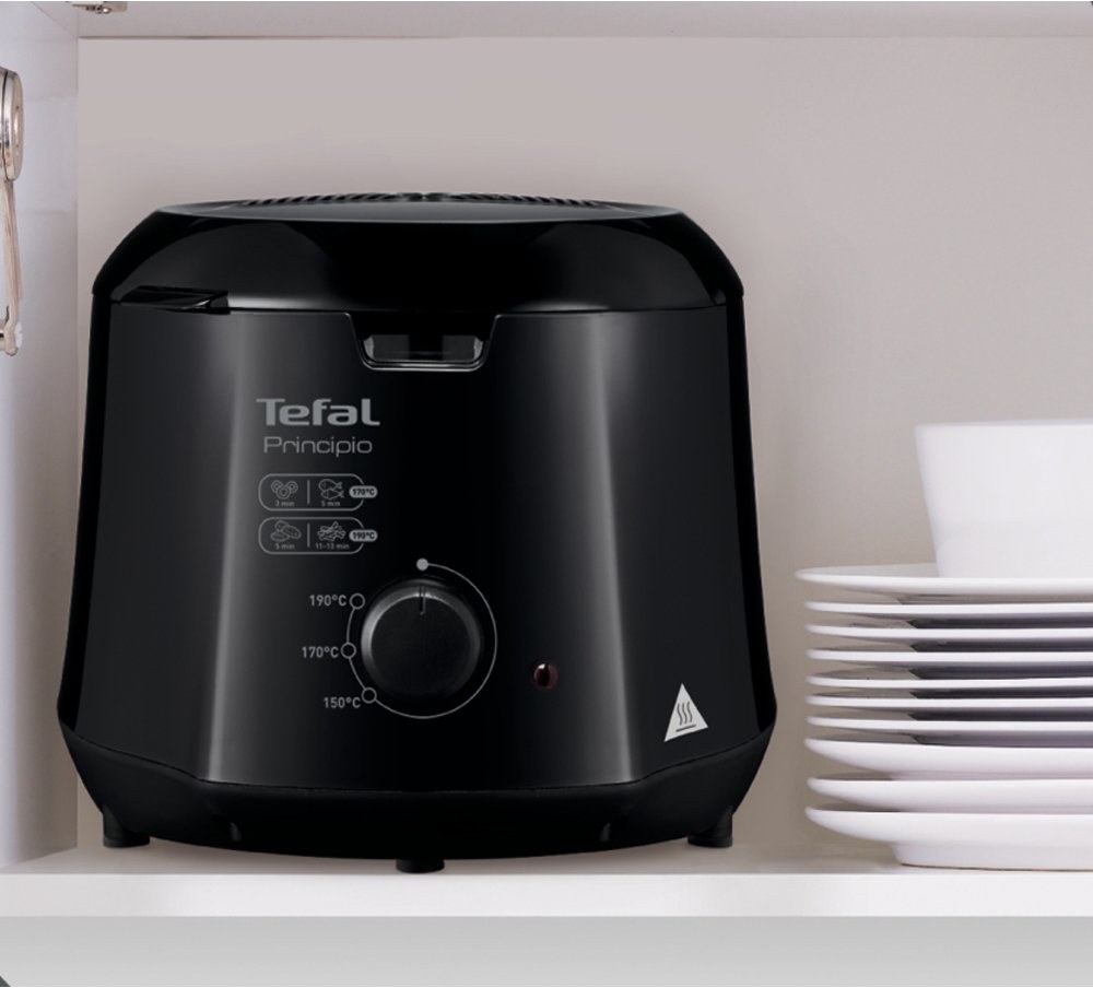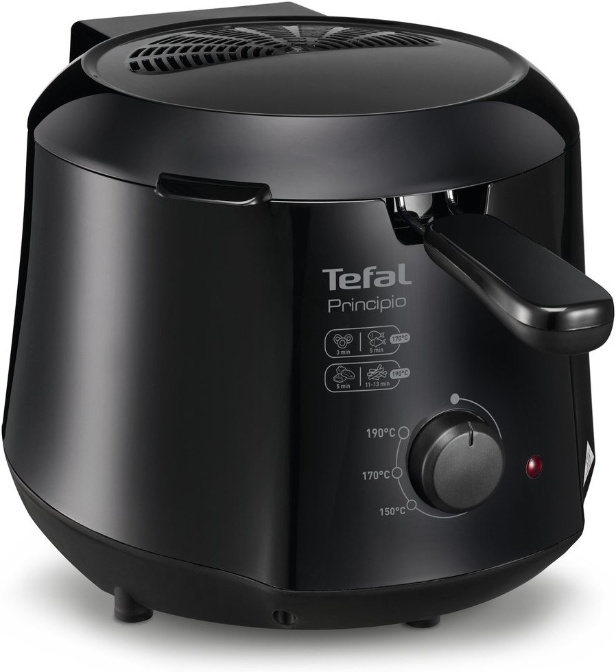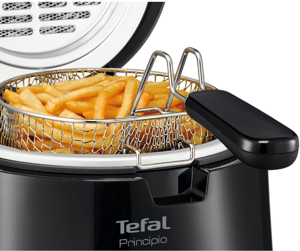 Principio je malá fritéza Tefal... Ale má všetko, čo má mať! S fritézou Principio môžete pripraviť až 600 g hranoliek len s 1,2 l oleja, a ušetríte olej, čas aj energiu, keďže prístroj má spotrebu len 1000 W. 600 g hranoliek je viac ako množstvo pre 2 osoby, avšak ak máte hostí, môžete Principio použiť aj na prípravu tapas a najrôznejších pražených pokrmov: taštičiek samosa, krokiet, falafelu, vyprážaných rýb, vyprážaného pečiva alebo šišiek.... Nápady Vám nikdy nedôjde.