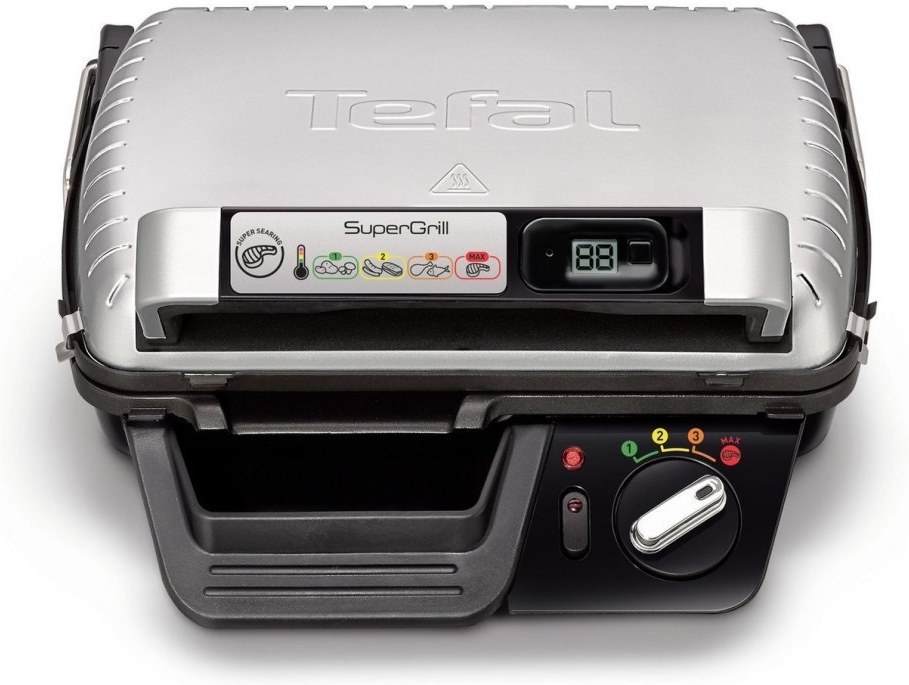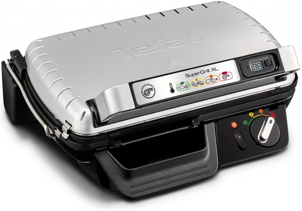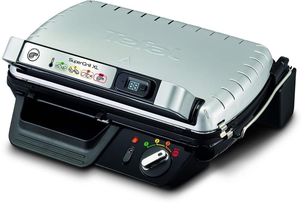 Kontaktný elektrický gril Tefal SuperGrill XL prináša do domácnosti grilovanie v profesionálnej kvalite!SuperGrill timer XL je viacúčelový gril s termostatom so 4 polohami. Na digitálnom časovači môžete zvoliť dobu grilovania podľa svojej chuti a zvyku. Doprajte si pokojné spoločné chvíle s rodinou a priateľmi pri výbornom grilovanom jedle! Pripravujte všetky druhy surovín na každú príležitosť: grilovať môžete buď v kuchyni alebo vonku na stole. Vďaka režimu restovania sa mäso stiahne a zostane šťavnaté, takže si vychutnáte každé sústo.