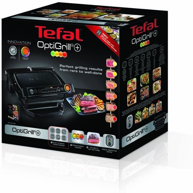 Dokonalé výsledky grilovania mäsa od krvavého po dobre prepečené. S maximálne inovatívnym elektrickým kontaktným grilom OptiGrill+ sa o prípravu vynikajúcich pokrmov postará inteligentná technológia. Vďaka technológii „Automatic Sensor Cooking“ sa automaticky nastaví čas a teplota grilovania podľa hrúbky a počtu porcií na grile. Prístroj ponúka 6 programov (hamburger, hydina, sendvič, klobása, červené mäso, ryby) a režim pre mrazené potraviny. Svetelný indikátor súčasne umožňuje priamo sledovať prípravu: fialová farba pre predhriatie, modrá a potom zelená na začiatku grilovania, žltá pre krvavé mäso (rare), oranžová pre stredne prepečené (medium) a červená pre dobre prepečené (well-done). Prípravu je možné dokonale prispôsobiť chuti každého stravníka, jednoducho zdvihnite veko, vyberte upečené mäso a nechajte zostávajúce porcie ďalej grilovať! Doplnkový manuálny režim so štyrmi nastaviteľnými úrovňami teploty vám umožní prípravu akýchkoľvek potravín a je dokonale prispôsobený i pre ovocie a zeleninu, ktoré môžete grilovať presne podľa svojich predstáv. Objavte elegantný dizajn grilu OptiGrill Black Edition, ktorý sa dokonale hodí do vašej kuchyne.Dokonalé výsledky grilovania mäsa od krvavého až po dobre prepečené