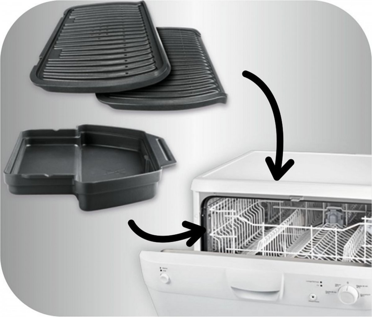 Nepriľnavé grilovacie pláty a odkvapkávacia nádoba sú vhodné do umývačky.
